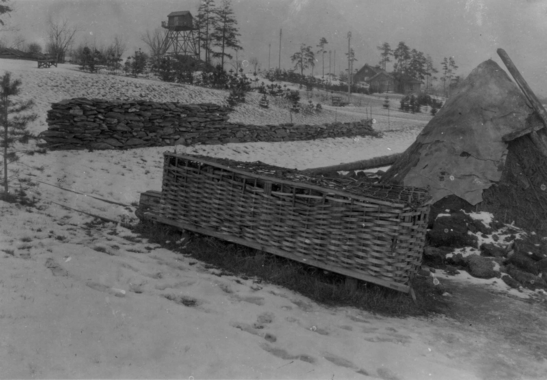 Bilder: "Den reisende søker etter folk på skiftet og treffer endelig bakstepiken i bryggerhuset". Lavering av Johannes Flintoe og kullkurv, digitalt.museum. Skiløperen: Johannes Senn: "En norsk Skieløber", soldat med uniform fra 1808, publisert 1811, wikimedia.